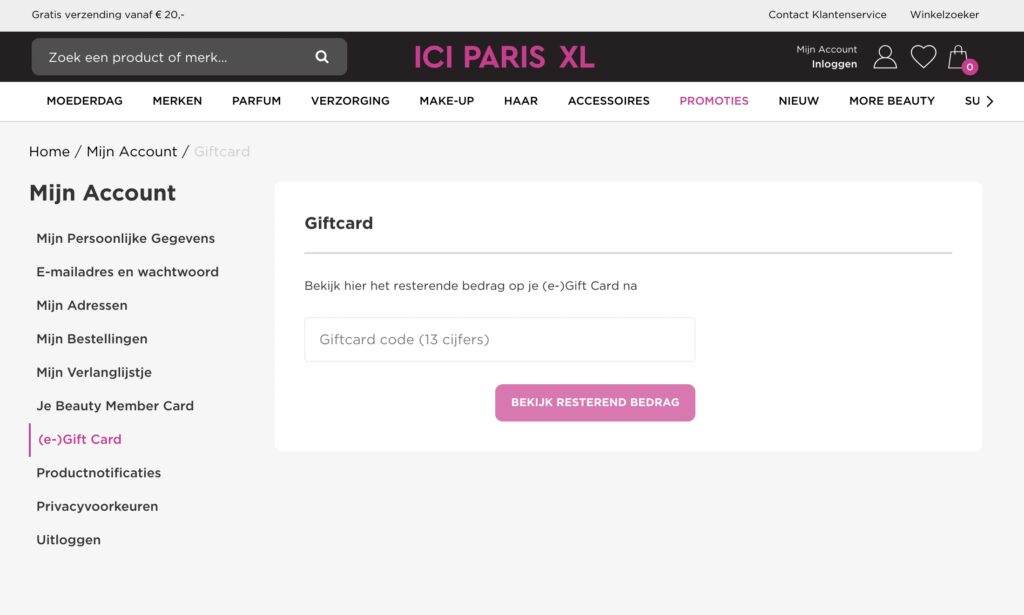 ICI Paris gift card saldo besteden